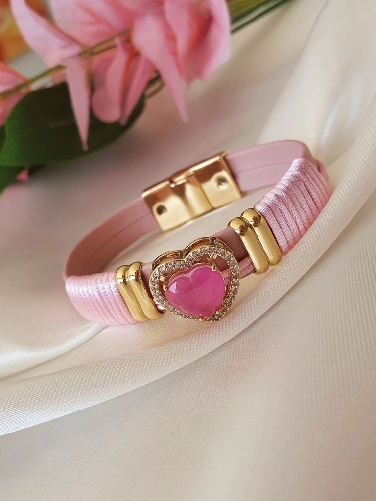 Bracelete Courino Rosa Banhado Ouro 18k