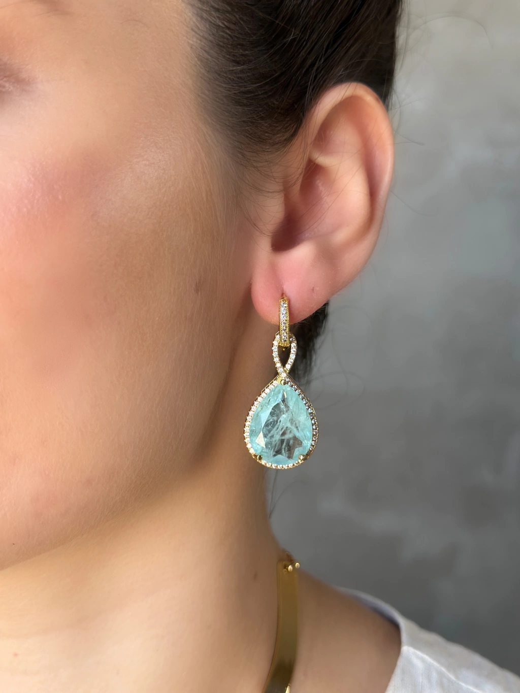 - Brinco 2 em 1 com pedras fusion na cor azul claro. Super versátil, permitindo tirar a gota e usar somente a base, que é composta por argolinha cravejada de zircônias premium na cor branca.