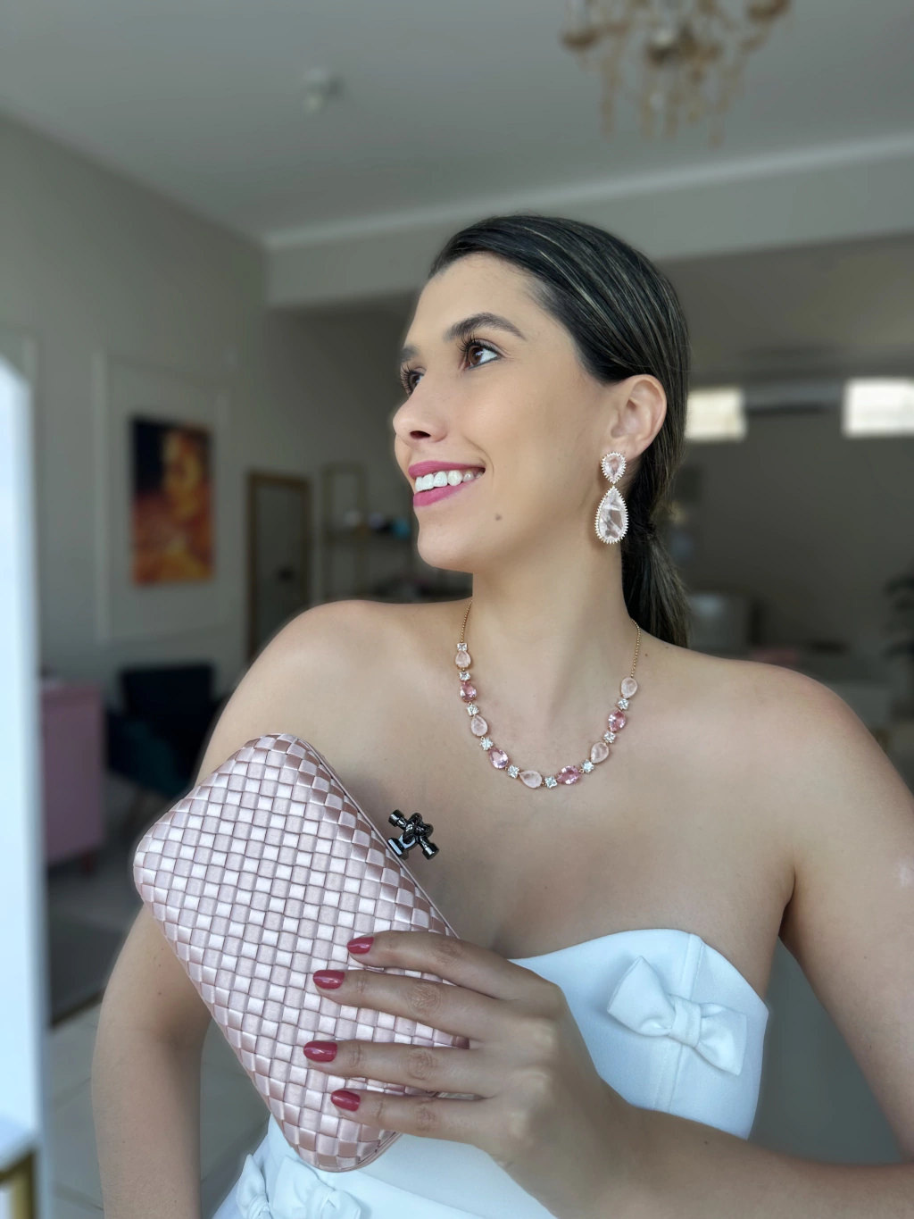 Clutch Feminina Treliça em Cetim Rose