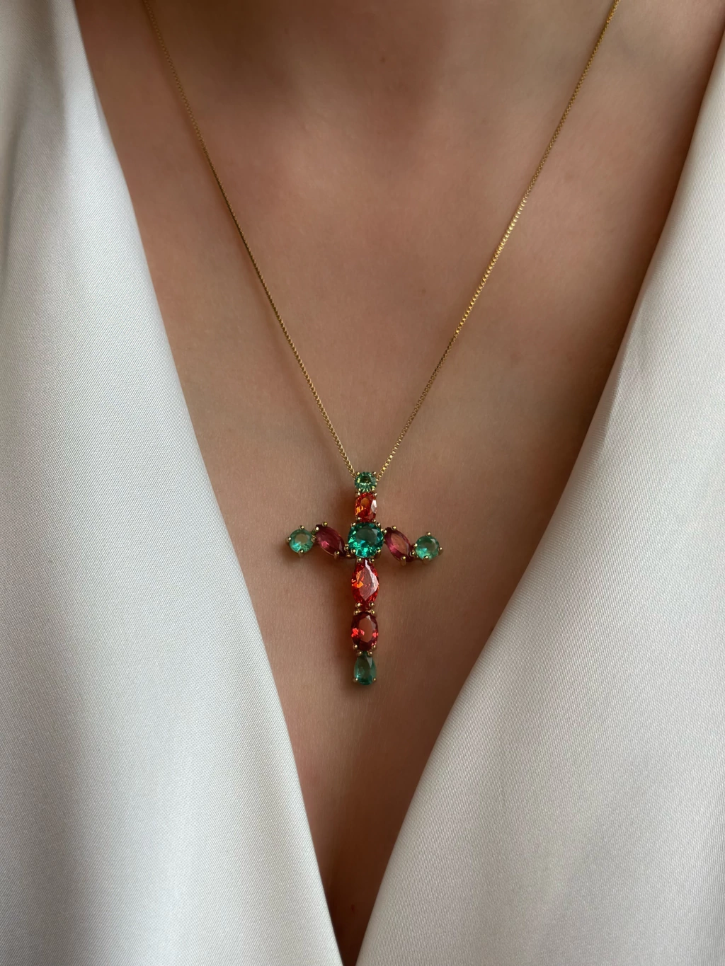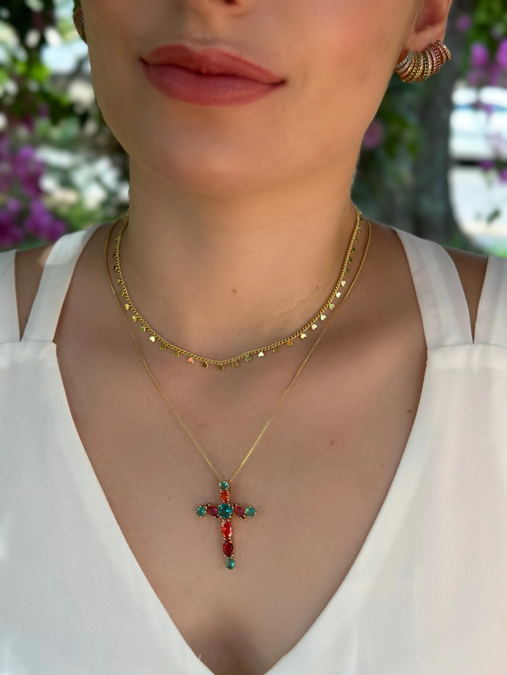 Colar Cruz com Pedrarias Banhado Ouro 18k