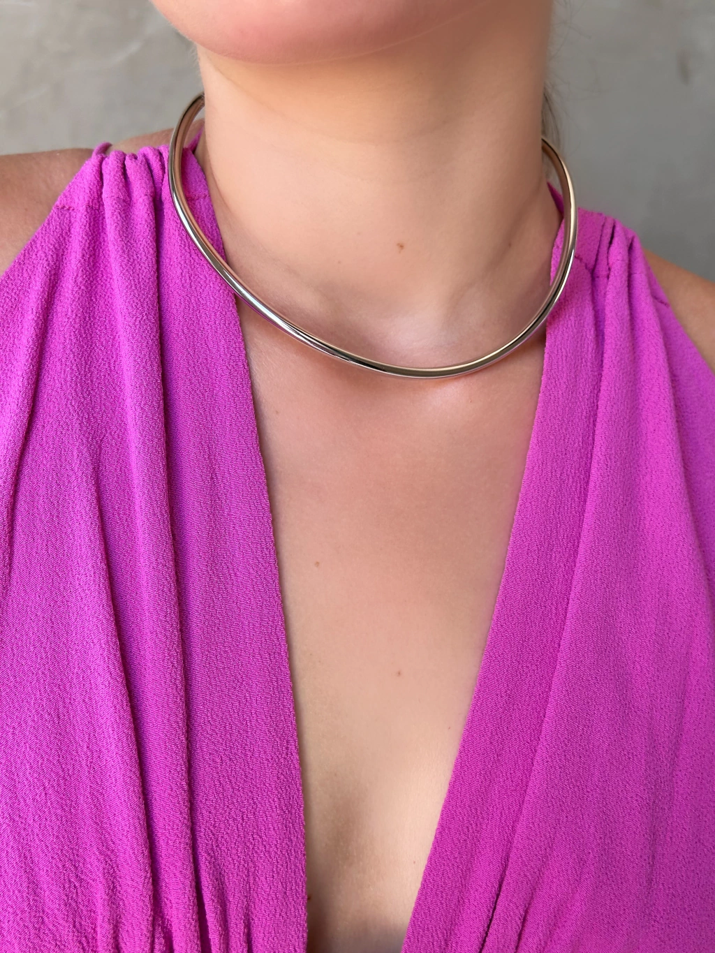 Colar Feminino Choker Aro Banhado no Rodio Branco