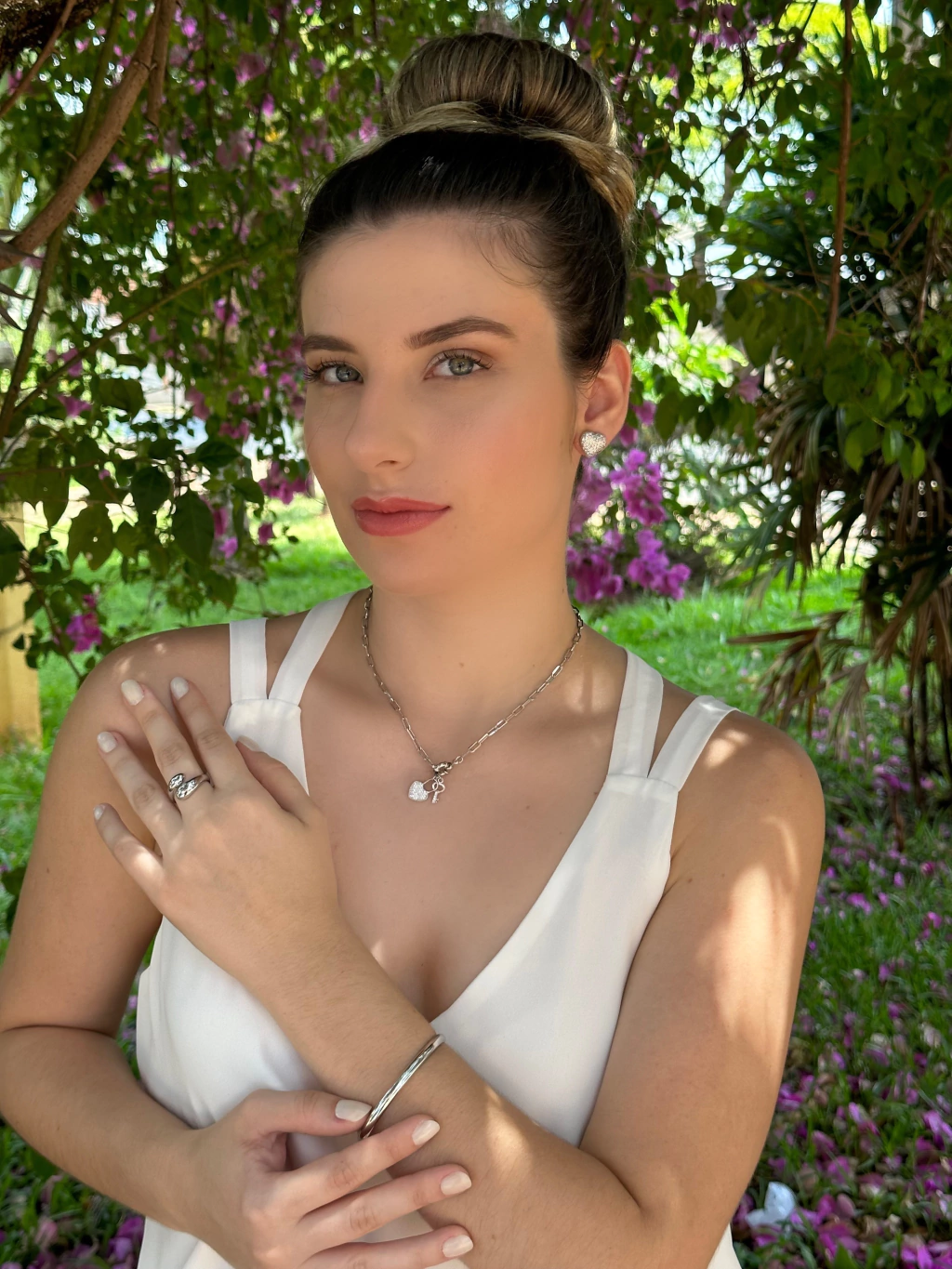 Colar Feminino Corrente de Elos Banhado no Rodio Branco